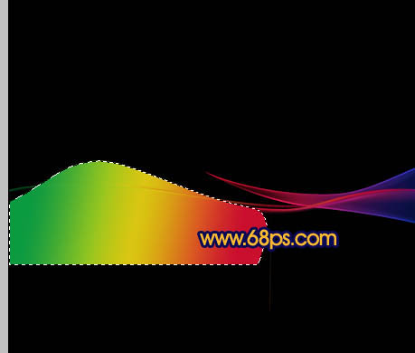 9、再来制作左边光束。新建一个图层,用钢笔勾出底色选区,如图15。选择渐变工具,颜色设置如图16,由左至右拉出线性渐变。注意好左右的色彩衔接。