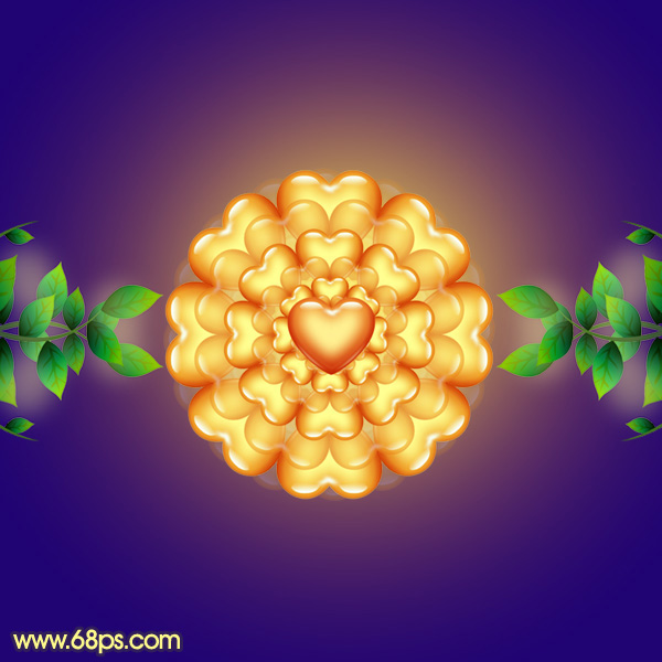 本教程重点是水晶心形的制作,需要把心形的质感渲染出来。然后把做好的心形复制组成大小不同的圆环,局部再调整心形的不透明度,做出漂亮的花朵。