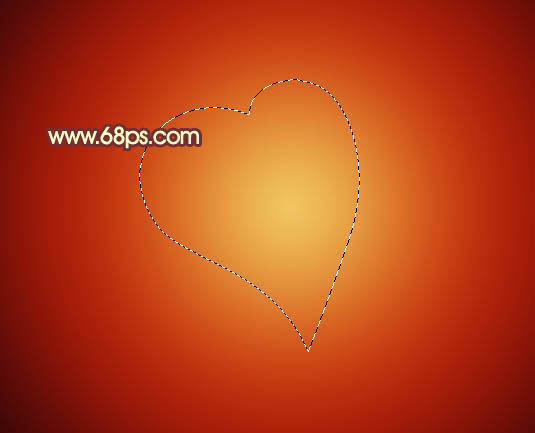 2、新建一个图层,用钢笔勾出图3所示心形的选区,再选择渐变工具,颜色设置如图4,拉出图5所示的径向渐变。