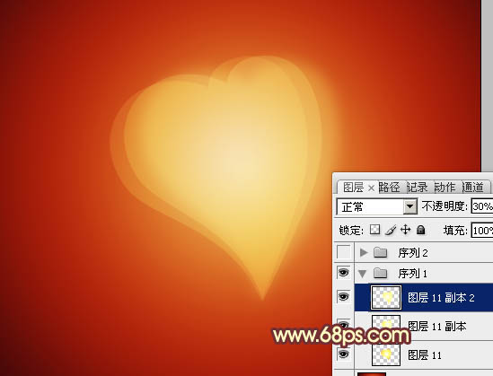 3、把做好的心形图层不透明度改为:20%,然后按Ctrl