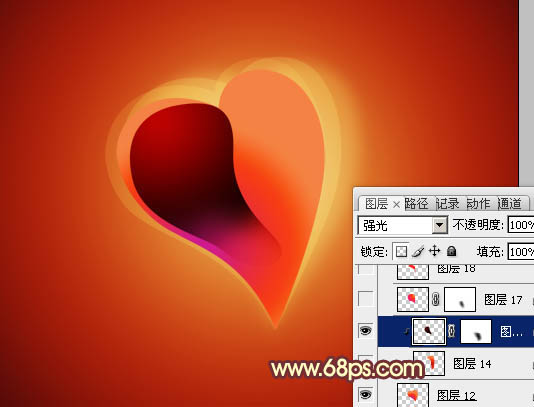 + Alt + G 创建剪切图层(后面新建的图层都需要创建剪切图层)。用钢笔勾出图11所示的选区,拉上图12所示的径向渐变。效果如图13。确定后把图层混合模式改为“强光”,加上图层蒙版,用黑色画笔把两端稍微涂点过渡效果,如图14。
