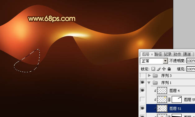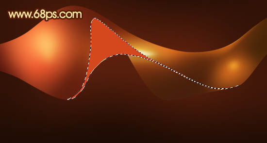 19、在图层的最上面新建一个组,新建图层后用钢笔工具勾出图21所示的选区,填充颜色:#D5481D。取消选区后天就图层蒙版,用黑色画笔把图22选区部分以外的部分擦出来。