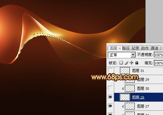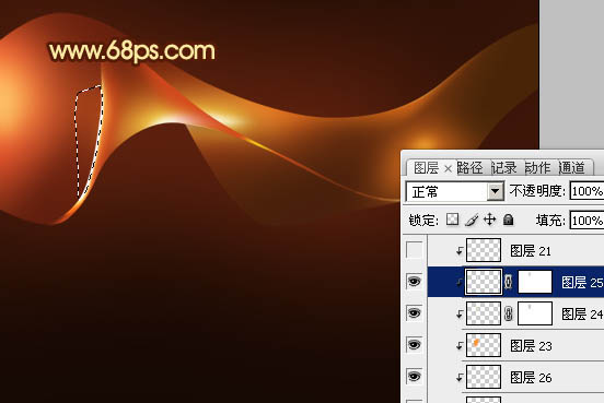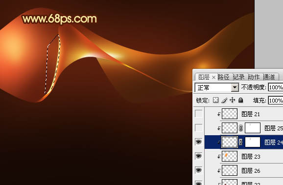 24、新建一个图层,用钢笔勾出下图所示的选区,羽化1个像素后填充橙黄色。