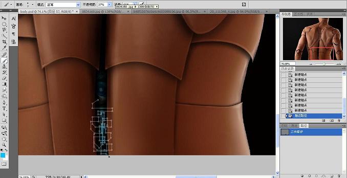 16、电路的制作。乱画一些相交的路径(注意按住shift键),用画笔工具选天蓝,描边路径,再选粉蓝,缩小笔刷像素,描边路径。最后选白色,再次缩小笔刷像素,描边路径然后擦除多余部分。更改图层混合模式为叠加。