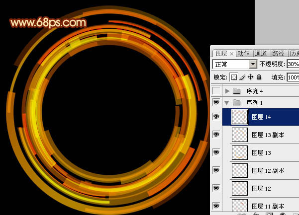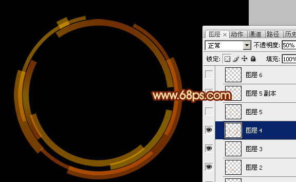 6、新建图层,同上的方法制作其它圆环,中间的圆环图层混合模式改为“颜色减淡”,如图9