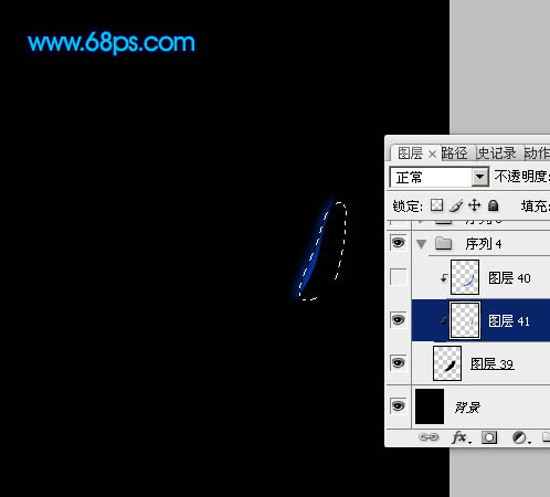 3、新建一个图层,用钢笔勾出下图所示的选区,羽化3个像素后填充颜色:#003ABA。然后按Ctrl