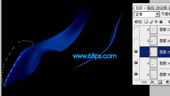 9、新建一个图层,用钢笔勾出左边边缘高光部分的选区,羽化2个像素后填充颜色:#0037F0。