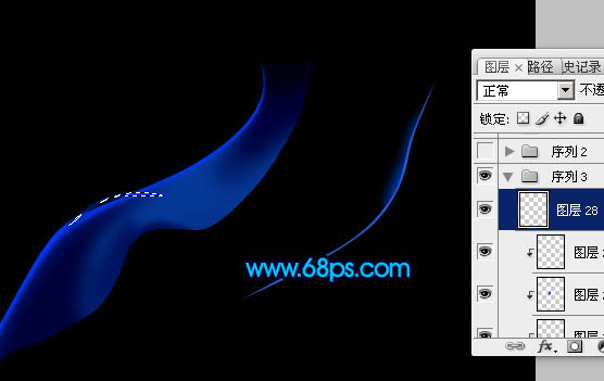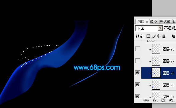 12、在本组图层的最上面新建一个图层,用钢笔勾出下图所示的选区,填充颜色:#0037F0,如下图。