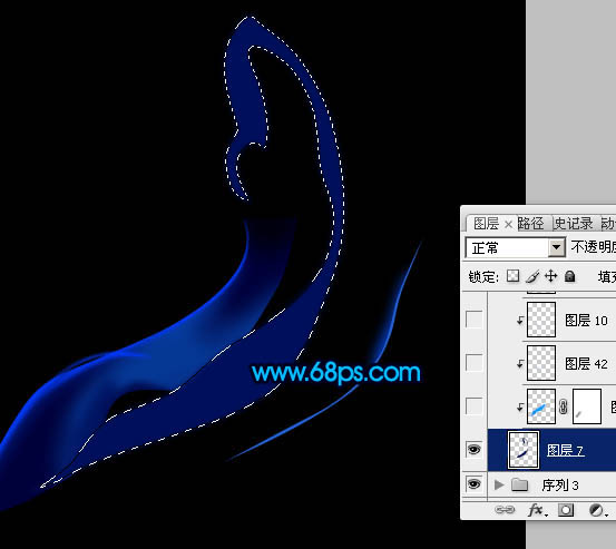 16、新建一个图层,用钢笔勾出尾部高光部分的选区,羽化2个像素后填充颜色:#119CFF。