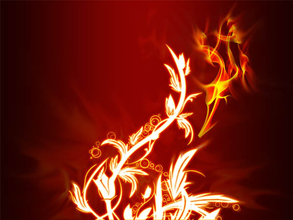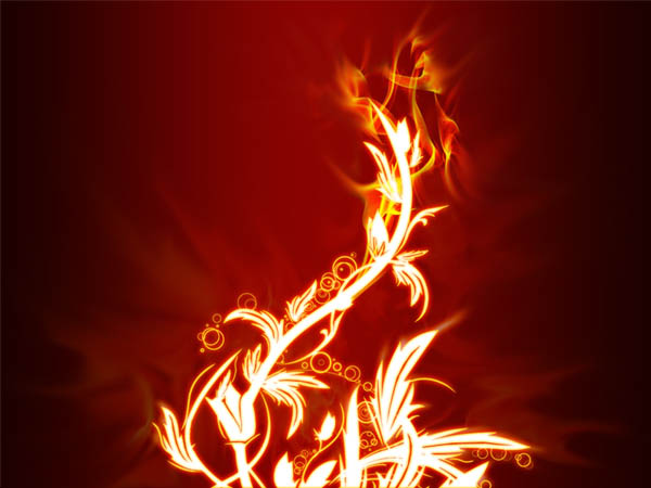 9、现在我们加强火焰,在画布上加入小火焰,放在花图层的下面,然后在适用涂抹工具,涂抹出它燃烧的效果,过程如下图。