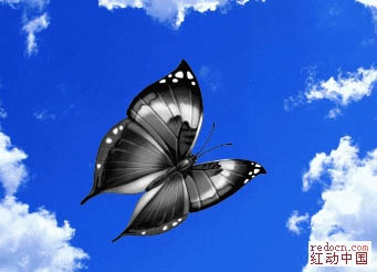 云彩蝴蝶制作方法比较简单。先选择好蝴蝶及背景素材后,把蝴蝶扣出来,适当高斯模糊处理,然后用云彩滤镜做出云彩纹理,再适当改变图层混合模式,即可做出想要的效果。