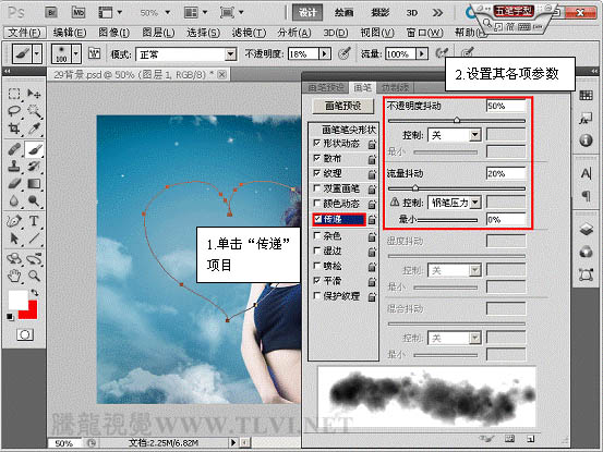 9、按下<Enter>键确认操作,选择“画笔工具”,用设置好的画笔为路径描边。