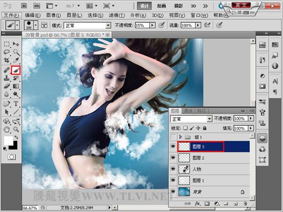 2”图层上方新建“图层 3”,用“画笔工具”绘制图像。