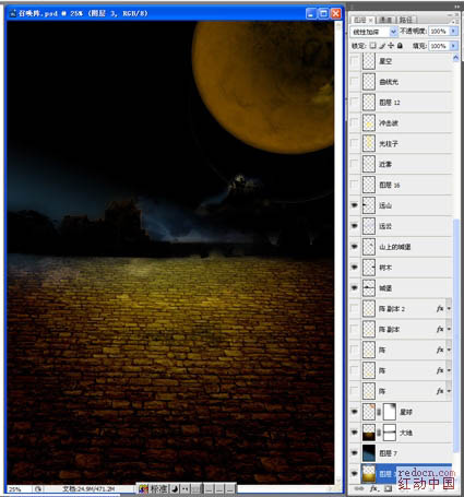8、现在我们来加上闪电。。。有人会说哇那么漂亮的闪电怎么弄?很简单。笔刷哈哈。