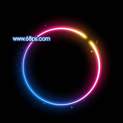 11、新建一个图层,选择圆角画笔工具,把笔刷的硬度设置为:100%,前景色设置为白色,用画笔在圆环周围点一些白点,锁定图层后拉上图17所示的径向渐变。