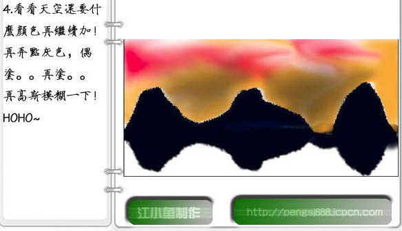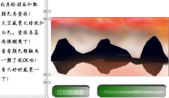 6、新建一个图层,湖面上也加点颜色再涂抹。天空部分感觉有点暗,可以多加点白色涂抹,可适当模糊处理。