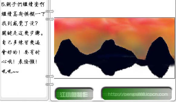 作者合成的非常细腻,很多细节的处理都值得借鉴,如水面倒影的处理部分,作者先制作好水波纹理,然后把倒影部分用置换和动感模糊滤镜特殊处理,