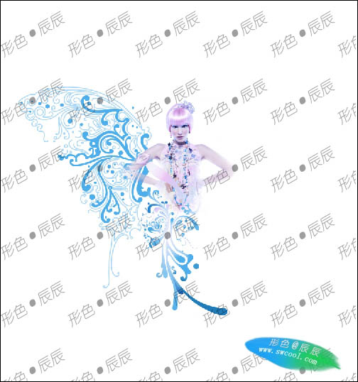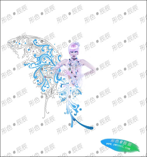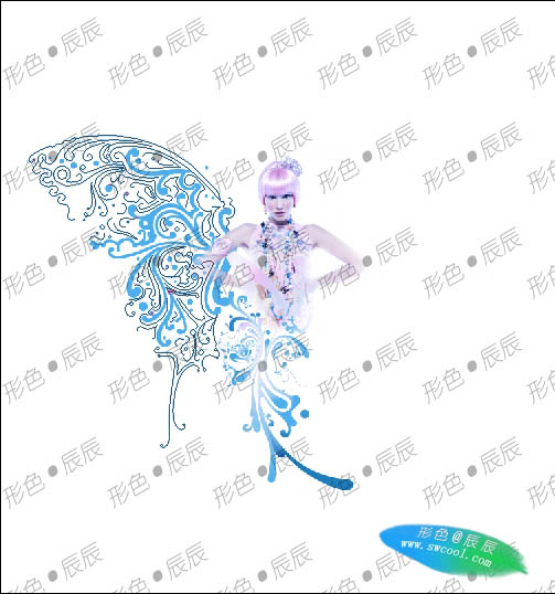 7、主体花纹部分做好后,新建一个图层,用钢笔勾出边缘部分的花纹路径,转为选后适当用1像素的蓝色描边,再适当降低图层的不透明度,让翅膀看上去有层次感,过程如下图。