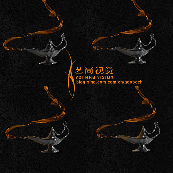16、下面我们对灯进行上光,方法如下:设置前景色为橙色,选择“画笔工具”使用不同透明度的画笔对灯不同的位置进行涂抹,得到以下效果,如下图: