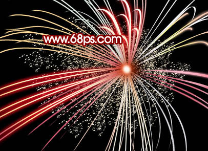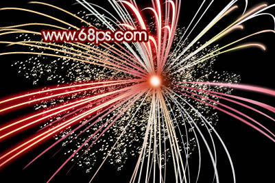 12、在背景图层上面新建一个图层,选择画笔工具,选择刚才定义的笔刷,然后在中心光点附件点上小点,颜色为淡黄色,如图16,17。