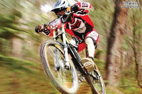 3、按Ctrl+Shift+N新建立一个图层,使用柔角笔刷工具,主直径设置为4px,设置前景色为白色,之后使用钢笔工具把车轮选中。