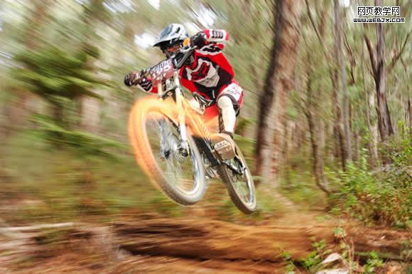 6、选择涂抹工具,设置柔角,主直径30px,硬度35%,用这个工具涂抹,使车轮产生火的效果。