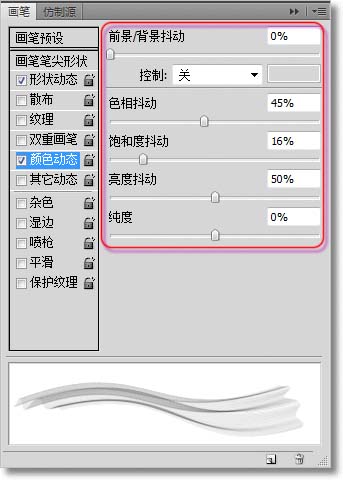 5、在画笔选项中点击“切换画笔面板”图标,设置画笔参数如图示。