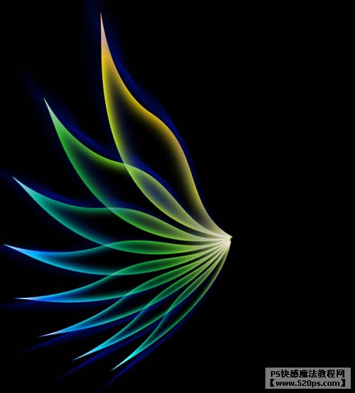 13、用同样的方法制作翅膀的右边部分,盖印图层,此时将出现2对完整的翅膀,将第二对翅膀缩小,并设置图层模式为滤色,完成。