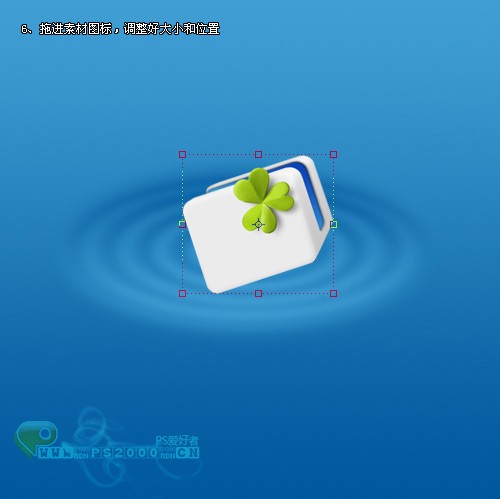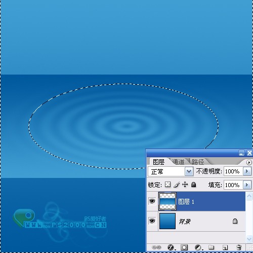 5、选择椭圆选框工具,框选水波部分,适当羽化后按Ctrl