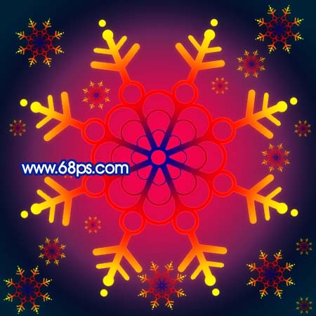 13、然后把雪花多复制一层,适当调整下大小和角度,效果如图18。
