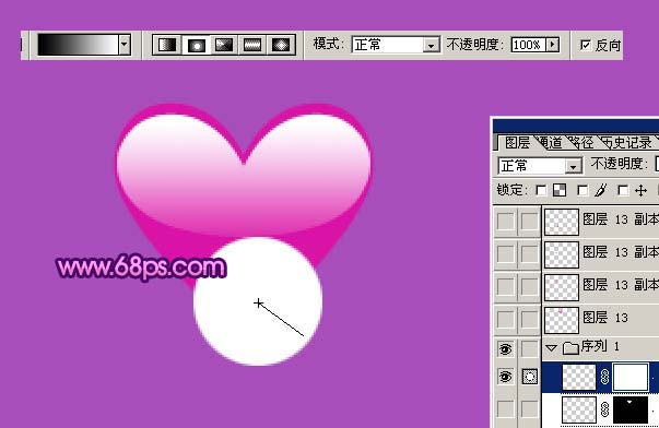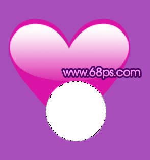 5、新建一个图层,用椭圆选框工具在心形的下方拉一个正圆选区,然后填充白色,然后取消选区,如图6。