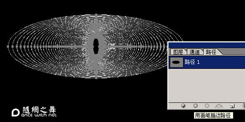 还有一种实现方法原理一样,只是利用“椭圆选择工具”选择椭圆区域,进行“描边”,Ctrl+T设置参数,Ctrl+Shift+Alt+T变换,结果如图: