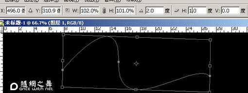 4、Ctrl+Shift+Alt+T变换,新建“图层3”,运行“用画笔描边路径”,结果如例二图。