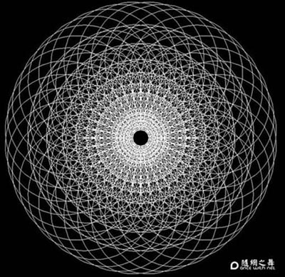 另一种方法,就是用“钢笔工具”画路径,然后“用画笔描边路径”,直接在线性图形上运行Ctrl+T设置参数,Ctrl+Shift+Alt+T变换,结果如图。这个时候就可以明显发现,外面的线条边的毛糙了。