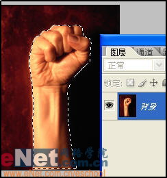 2、选择磁性套锁工具,沿着手臂的边缘创建选区。