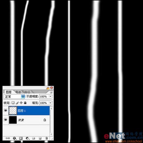 3.选中图层1进行操作,使用硬度0%的画笔选取白色进行绘制,从上到下画出线条,注意不需要画的太直,随意的画出来就可以了。如图3所示。