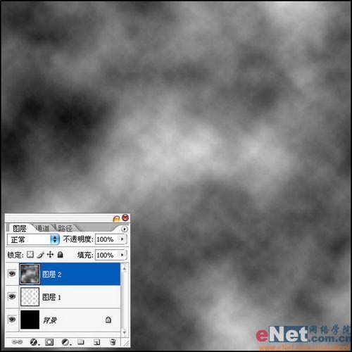 4.新建图层2,执行滤镜/渲染/云彩,将云彩效果做出来,如果效果不满意可以反复按下Ctrl+F进行再次执行云彩效果,直到满意为止。如图4所示。