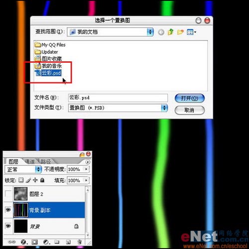 15.按下确定后,会让你选择一个置换图,选择刚才我们存的“云彩”图片,单击打开即可。如图15所示。