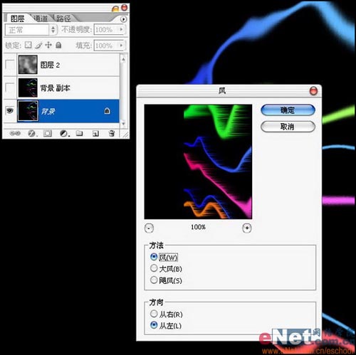20.接着执行滤镜/风格化/风,方法选择风,方向选择从左。如图20所示。