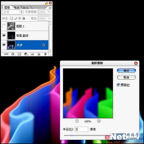 23.选中背景图层执行操作,执行滤镜/模糊/高斯模糊,将模糊半径调整为3像素,按下确定。如图23所示。