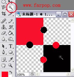 8.用魔棒工具选取相对的圆(单击一圆,按shift键再选取另一圆。);