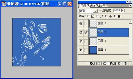13、将图层7、8、9合并,并作拷贝;导入一幅图片如;