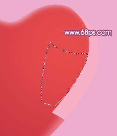 9、新建一个图层,用钢笔勾出下图所示的选区,羽化3个像素后填充淡紫色:#FEDAF7,效果如下图。