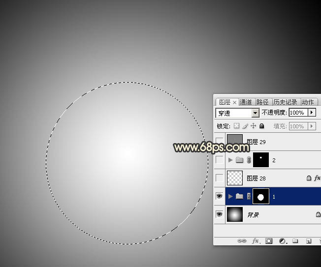 3、新建一个组,选择椭圆选框工具,按住Shift键拉一个正圆选区,然后给组添加图层蒙版。