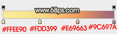 6、新建一个图层,用椭圆选框工具拉出下图所示的椭圆选区,羽化20个像素后填充橙黄色。