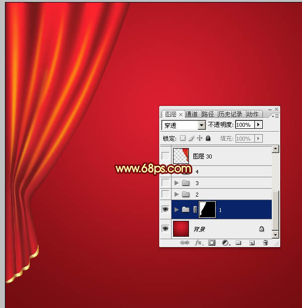 2、先来制作帷幕的左侧部分,需要完成的效果如下图。主要是褶皱部分的制作。