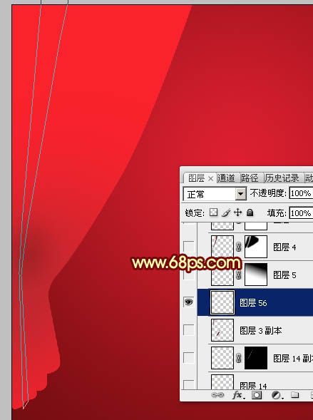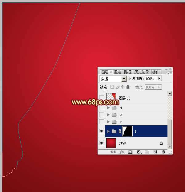3、新建一个组,用钢笔勾出帷幕左侧部分的轮廓,如下图。再按Ctrl