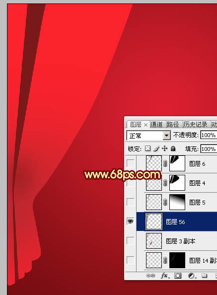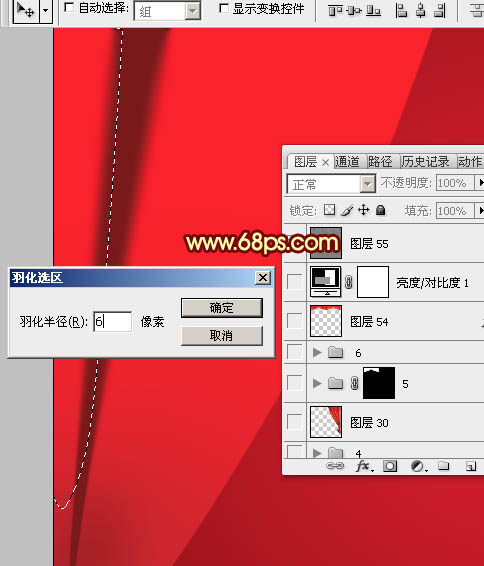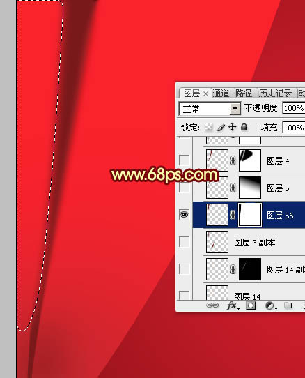 + 回车把路径转为选区,然后填充较暗的红色,取消选区后效果如下图。