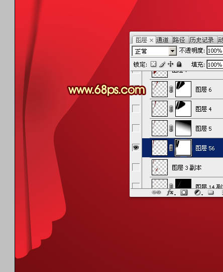 11、再用钢笔在右侧勾出选区如图14,同样羽化6个像素后在蒙版上填充黑色。