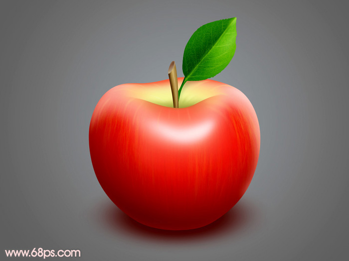 绘制苹果之前,需要先找一些苹果的实物图参考一下,找出自己满意的图片。然后根据自己的理解,由底层开始铺色、渲染暗部和高光、增加纹理等。